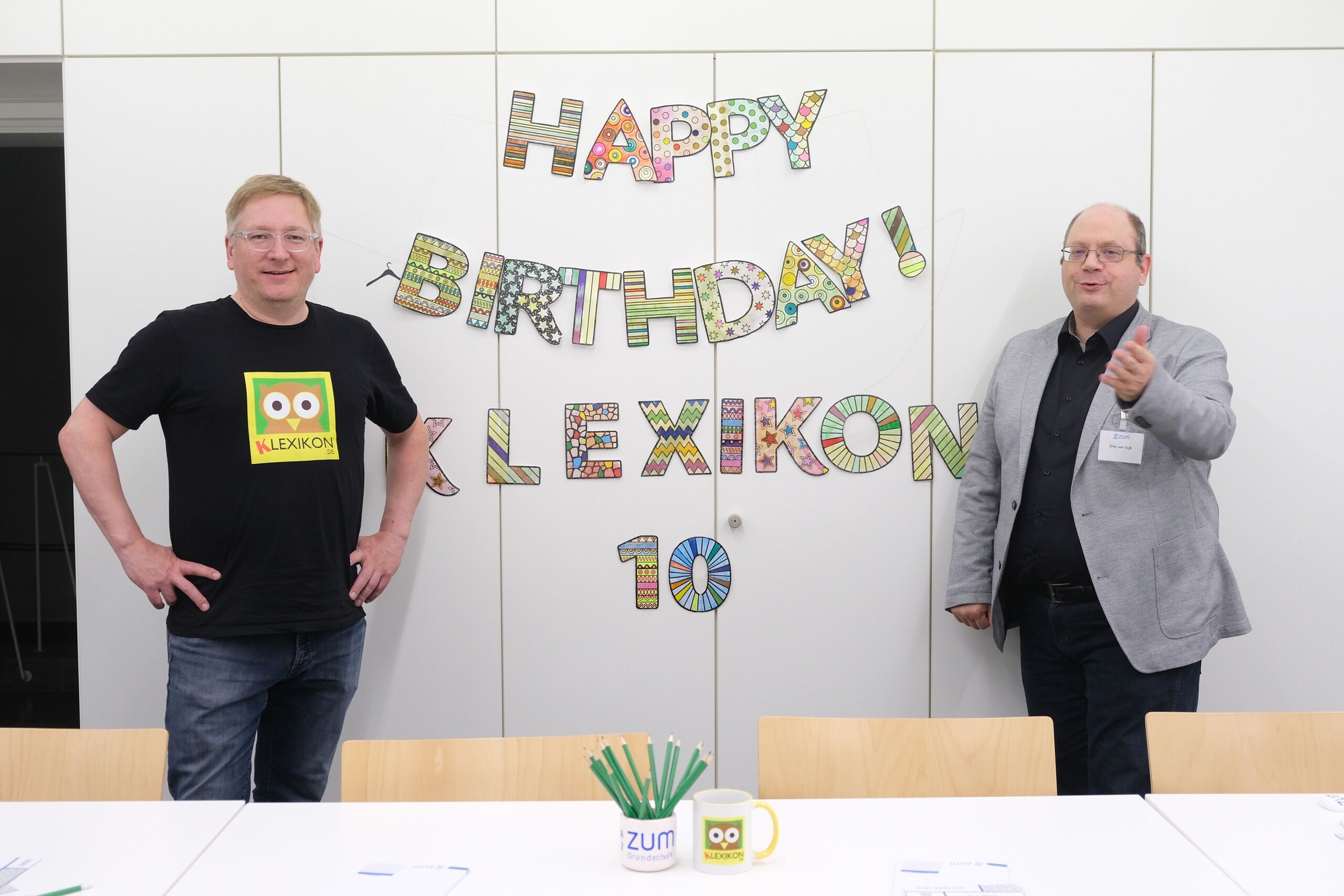 Michael Schulte und Ziko van Dijk beim 10. Geburtstag des Klexikons, November 2024 beim ZUM-Mitgliedertreffen in Würzburg